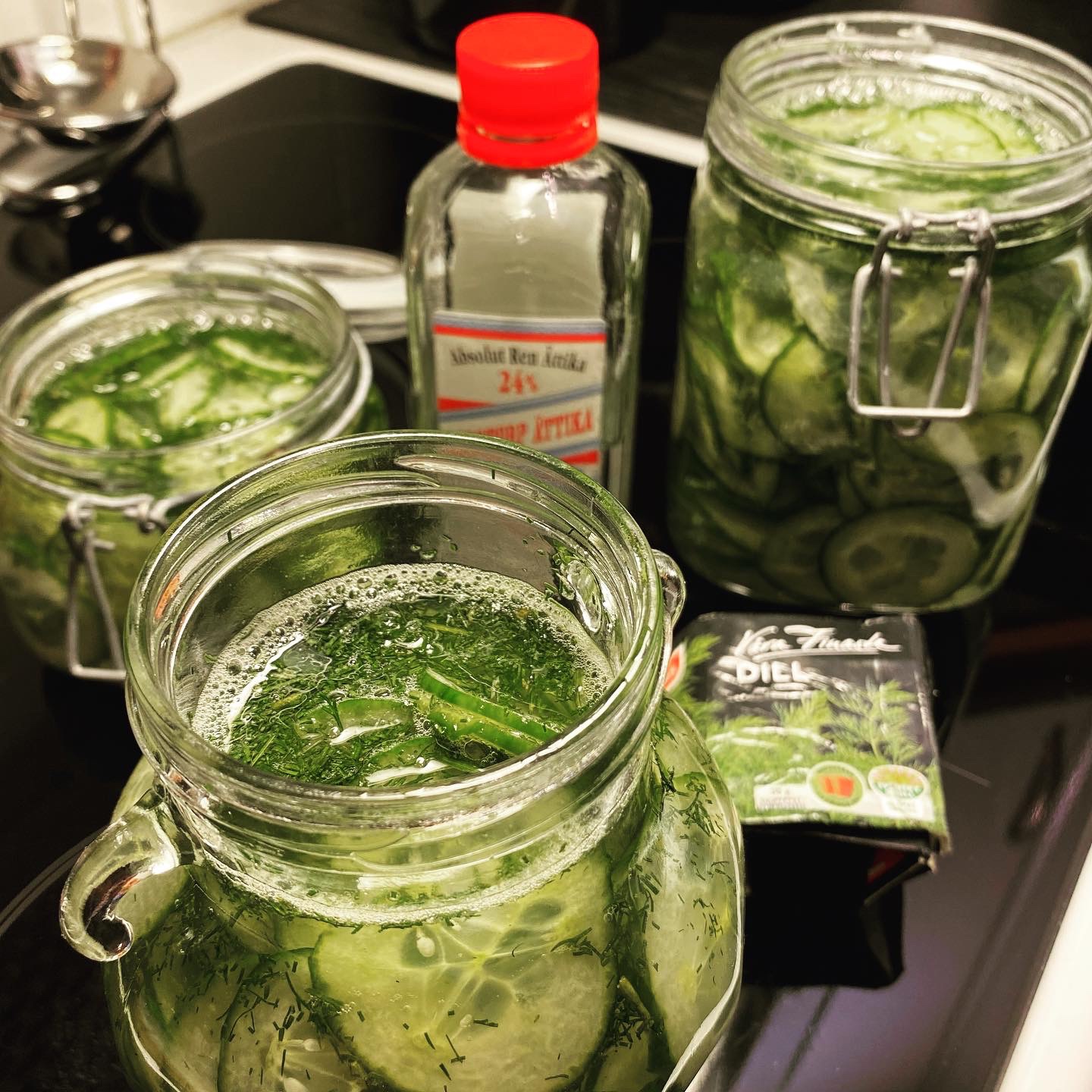 Hade först tänkt gå loss på gurkstavar en masse som snacks samma kväll, men jag hade lite tursamt köpt hem både socker för gosaker, samt ättika för mina pocherade frukostägg, så ja det kändes som det var dags för en klassisk inläggning av ättiksgurka.