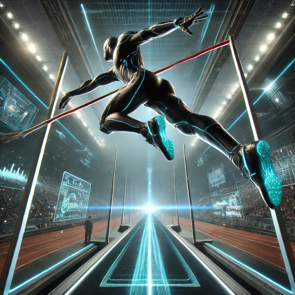 I love this idea—let’s create a futuristic, epic mid-air vault inspired by world-class pole vaulting! 🚀